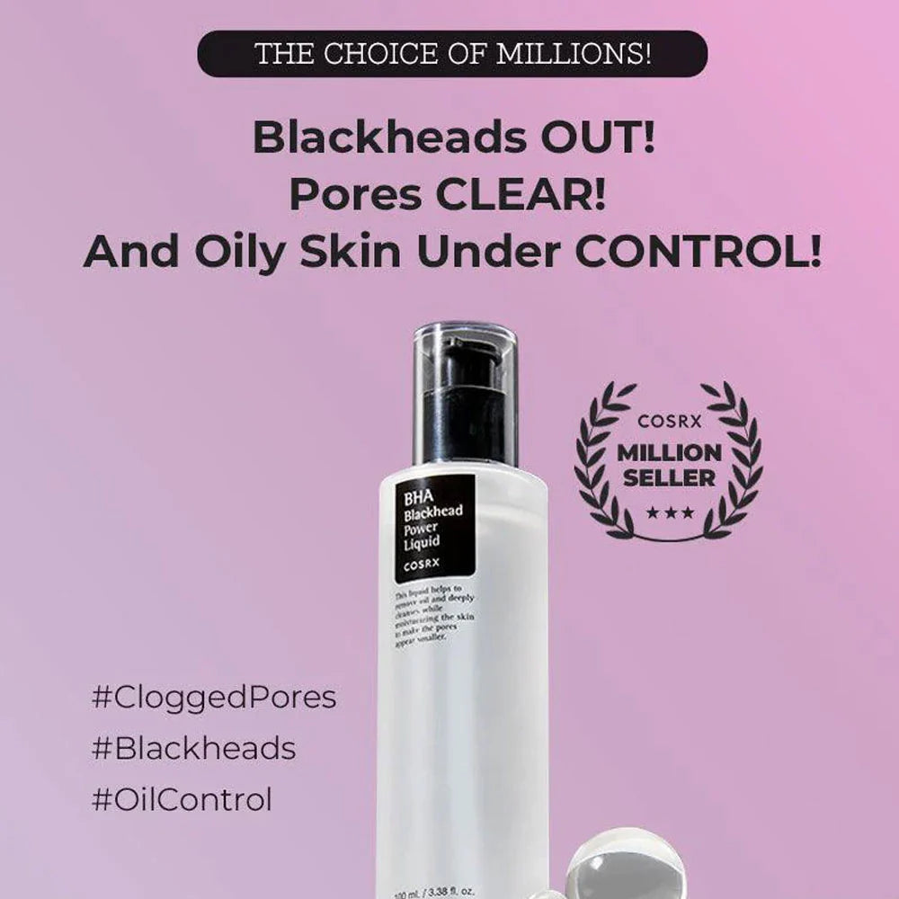 COSRX BHA Blackhead Power Liquid is a targeted exfoliating treatment designed to help clear pores and reduce the appearance of blackheads. Formulated with BHA (salicylic acid), it works to gently exfoliate inside the pores, remove buildup, and refine skin texture for a smoother, clearer complexion.